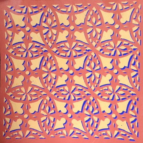 Schablonmålning, limfärg Bild 8 av 27Hälsingland har en rik mönsterkultur, här visas bland annat historiska mönster som reproducerats i ny färgsättning och helt nyskapade mönster.