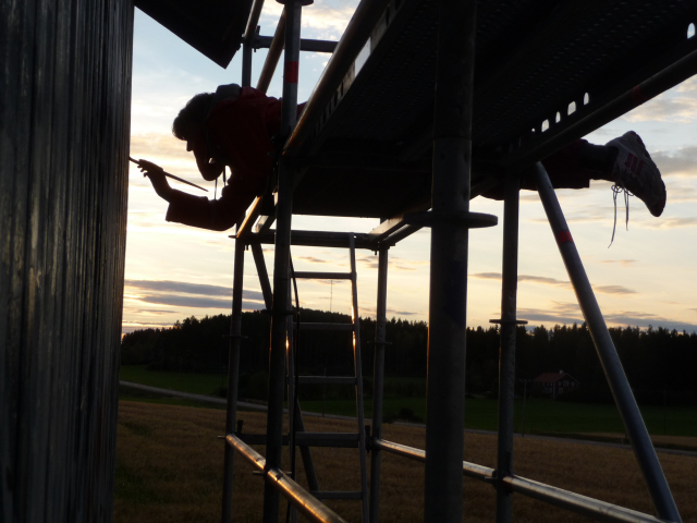 Hur? Under cirka två månaders tid augusti-september 2012 utfördes de praktiska arbetet. Ett tjugotal personer var involverade. Det innefattade: lagning av trasiga delar av vägg, borttagning av gammal slamfärg från väggarna, in oljning av vägg, grundmålning, uppmätning/ uppsättning av rutsystem, överförning av mönster från skiss till vägg, färgläggning i två omgångar samt ett sista lager med de svarta prickarna och uppsättning av belysning.