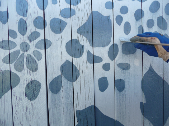 Hur? Under cirka två månaders tid augusti-september 2012 utfördes de praktiska arbetet. Ett tjugotal personer var involverade. Det innefattade: lagning av trasiga delar av vägg, borttagning av gammal slamfärg från väggarna, in oljning av vägg, grundmålning, uppmätning/ uppsättning av rutsystem, överförning av mönster från skiss till vägg, färgläggning i två omgångar samt ett sista lager med de svarta prickarna och uppsättning av belysning.