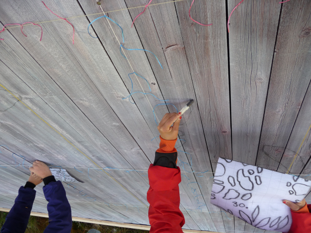 Hur? Under cirka två månaders tid augusti-september 2012 utfördes de praktiska arbetet. Ett tjugotal personer var involverade. Det innefattade: lagning av trasiga delar av vägg, borttagning av gammal slamfärg från väggarna, in oljning av vägg, grundmålning, uppmätning/ uppsättning av rutsystem, överförning av mönster från skiss till vägg, färgläggning i två omgångar samt ett sista lager med de svarta prickarna och uppsättning av belysning.